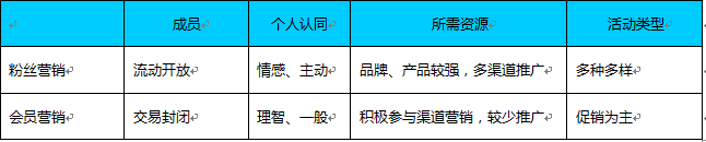 首先看一下,會員營銷與粉絲營銷的區別在哪里