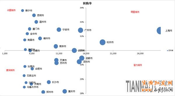 通過對不同城市客戶重復購買的情況分析,我們可以更有針對性的加大對重點復購城市的資源投入,根據不同城市的文化喜好,制定更個性化的鉆展圖,優化潛力城市的投放計劃,從而在廣告投入那塊把ROI提高。