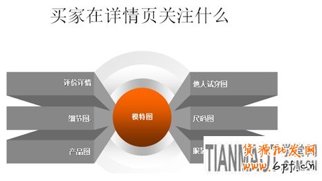 一個單品怎樣才能快速打造成店鋪熱賣款,在推廣之前還有很多工作需要準備。從店鋪角度來說,流量和轉化,是最重要的兩個因素。流量與店鋪基礎、推廣因素有關。而轉化,則與店鋪基礎,推廣,裝修,客服,產品,違規等因素也有關系。我們要想做好單品,其中最基礎的也就是單品本身的裝修。那么,站在買家的角度來看,他們最想看到的詳情頁是什么樣的呢?以服裝為例: