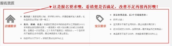 “天天特價”每天的流量是非常可觀的,而且要求門欄比較低,只要三心以上的信譽即可參與,不過還有個前提是需要開店時間大于等于90天。只要你達到三心以上,且開店90天以上,實物信用高于90%即可報名查看店鋪是否符合資質要求。“天天特價”只要你報名成功,產品性價比較高,那么一天300件將不是浮云,而且只要你做好關聯營銷,也許達到的效果遠遠超過預期的計劃,記住提前做好寶貝庫存和客服。到時候手一定會抽筋的。