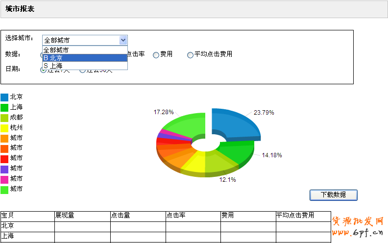 通過地域報表的數據,可以看到細分到城市的點擊情況。我們可以針對點擊量多的地域進行重點投放,而且可以對這個地區的買家包郵或者進行運費優惠政策,做到更精準的營銷,帶來更多的成交。