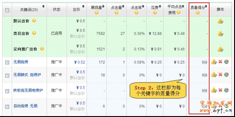 淘寶的直通車確實能帶來不少的流量,但對于銷量比較低的新賣家來說轉化率并不會太高, 這就要求我們控制好成本;最近也使用了一些直通車推廣產品,流量確實增加不少,總結了 幾點分享給大家參考參考,希望能夠花最少的錢達到最好的直通車推廣效果。 一、直通車排序規則 綜合排序規則中,會由匹配關鍵詞的出價和質量得分,共同來決定淘寶直通車推廣寶貝的展 現位置(即排名) 1、質量得分 質量得分主要用于衡量您的關鍵詞與寶貝推廣信息和淘寶網用戶搜索意向之間的相關性,其 計算依據涉及了多種因素。直通車會持續優化質量得分公式,其核心組成部分會保持穩定, 如下所示: ◆關鍵詞與寶貝本身信息的相關性; ◆關鍵詞與寶貝類目和屬性的相關性; ◆關鍵詞與寶貝在淘寶上推廣的反饋,包括成交,收藏和點擊; ◆帳戶的歷史記錄,根據您帳戶內的所有推廣和關鍵詞的反饋計算得出; ◆寶貝詳情頁質量; ◆其他相關因素。 查看質量得分的方式:進入推廣中的寶貝→編輯→即可看到每個關鍵詞的質量得分