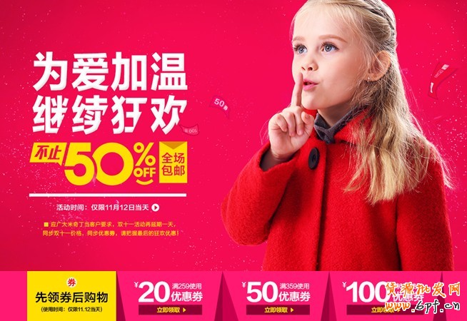 2、重點預熱:創意上引導雙11期間的活動,滿減、滿送、優惠券等,落地頁上引導加購物車,PC端和無線端一起