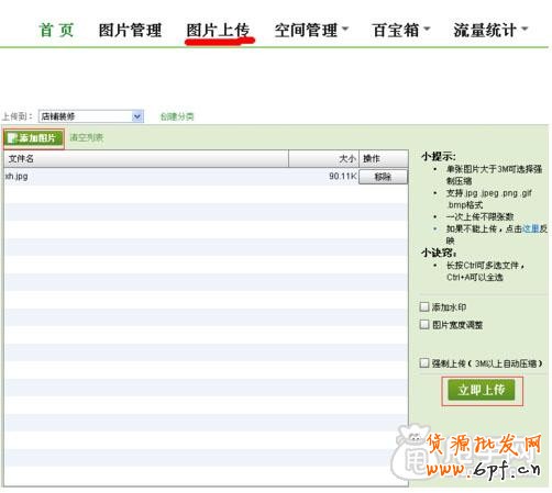 2、準備好需要上傳的圖片,然后點擊“圖片上傳”——“添加圖片”,上傳事先準備好的廣告橫幅到圖片空間,并且獲取圖片的鏈接地址,如圖