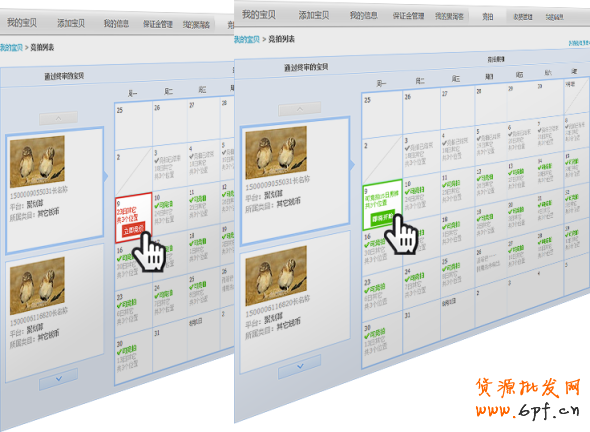 第一步: 先進入自己的聚劃算后臺,點擊“競拍”出現競拍日歷(商品通過審核的第二天)。