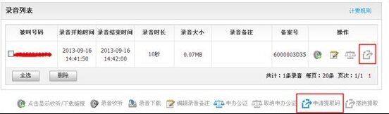 2、使用:撥打95105856,輸入對方號碼 + "#" 號鍵即可錄音,通話結束后在錄音列表中會有記錄。但需要確保聯系方式是買家的收貨電話或者旺旺聊天中買家承認的電話。點擊申請提取碼,投訴時將提取碼提供給在線客服,或投訴框備注。