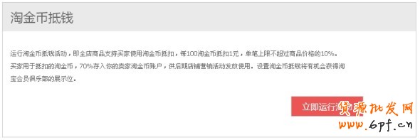 - 賺金幣:賣家設置全店商品或單品的淘金幣抵錢活動,買家購物時可用淘金幣抵現,買家的金幣70%打入賣家淘金幣賬戶。