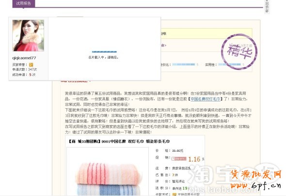 這份[我與家具品非常有緣之中國名牌雙燈毛巾]是在前不久發的哦,馬上就被評選為精華試用報告了。相當的開心啊,特地來發帖子,希望和大家分享我的喜悅啊!話說著也是我一個月中的第五次試用品哦!相當的開心和激動啊!
