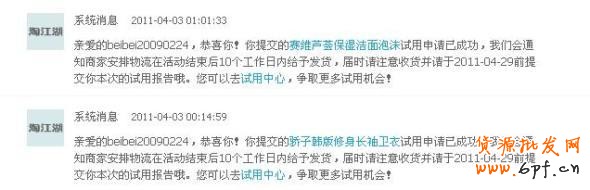 二、希望商家要把試用發貨后的訂單及時公布,雖然有些商家有公布,但有些商家還是沒有公布的!這點希望可以確保,這樣既可以讓試用者放心,也可以更有力的證明試用不是浮云啊,經常聽到有人說試用品收不到,這不知道是商家的原因還是試用者的原因,所以希望有個這樣的要求,把訂單號及時的公布出來!
