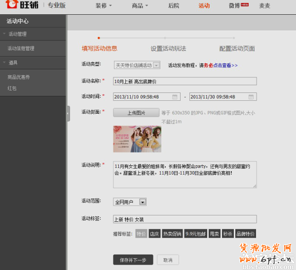 1、填寫活動信息: