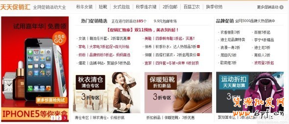 女包頻道、 內衣頻道、男裝頻道等類目頻道嵌入促銷匯模塊。