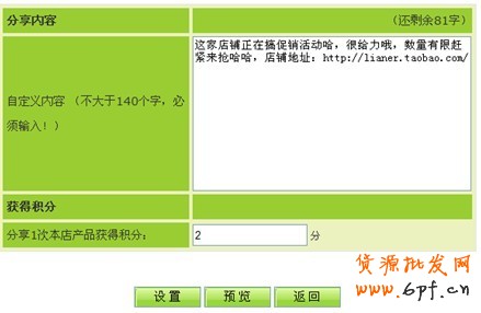 若是以打造爆款為主,在大促前此款寶貝就需要預(yù)熱,成為店鋪引流款或暢銷款,等大促時(shí)再設(shè)置醒目、刺激購(gòu)買的宣傳標(biāo)語(yǔ)和心動(dòng)價(jià)格,并在大促過(guò)程中實(shí)時(shí)更新直播爆款商品銷售狀態(tài)。再以吸引新客戶為例,著重點(diǎn)應(yīng)放在如何將訪客轉(zhuǎn)化為店鋪會(huì)員,諸如滿多少贈(zèng)送VIP權(quán)限,享有再次購(gòu)買商品幾折的權(quán)利。或是一些小招數(shù)比如“包郵卡”將新用戶轉(zhuǎn)化為忠實(shí)用戶,下次該用戶再次購(gòu)買時(shí)第一反應(yīng)是已經(jīng)付費(fèi)的“包郵卡”店鋪。當(dāng)然,老客戶對(duì)一些成熟的店鋪賣家更為重要,開(kāi)發(fā)一個(gè)新客戶的成本和維護(hù)8個(gè)老客戶的成本相抵。培育老客戶,降低推廣成本,銷售量穩(wěn)定增長(zhǎng)是通往大賣家的必經(jīng)之路。比如可以用工具“促銷百寶箱”的店鋪積分系統(tǒng)來(lái)維系老客戶,將老客戶的每一次進(jìn)店后的消費(fèi)行為和分享推廣行為轉(zhuǎn)化為積分的動(dòng)力,這個(gè)積分可以在老客戶二次購(gòu)買的時(shí)候抵現(xiàn)使用,刺激老客戶的回頭購(gòu)買和幫助店鋪主動(dòng)做微博分享推廣。