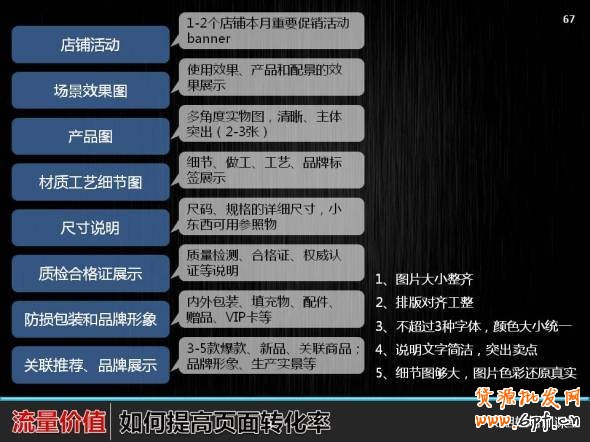 單品頁面就是一個說著固定語言的促銷員,它除了要將產品的外表、形狀、款式、內在的細節詳細的呈現在消費者眼前以外,還要打消他們的種種顧慮,樹立他們的消費信心。在瀏覽完描述頁面以后,能形成自身對產品價值的認可,以激發其消費欲望,推動他們作出購買決策。一個單品頁面,就是一個論證產品價值的過程,也是一個說服客戶的過程,所以,優秀的頁面設計能有效地提高轉化率和客單價,給商家帶去最直接的經濟效益。