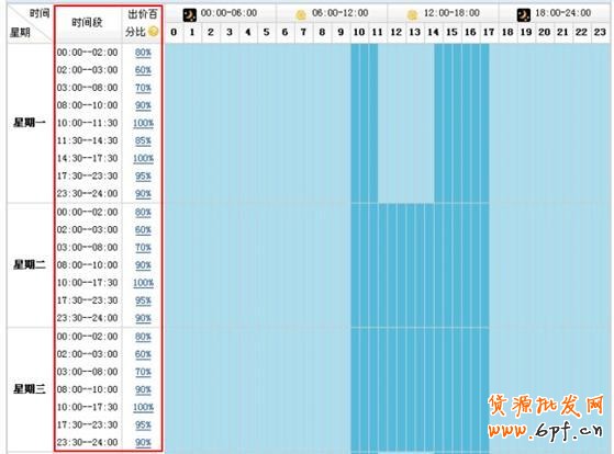 我們可以根據時間段來調整出價百分比,在我們客服下班的時候個人建議不要停掉直通車,但是可以降低出價百分比,理由1:半夜的時候大部分掌柜的直通車都已停掉,那么您與同行的競價就小了,您出更少的錢反而排到更好的位置,請不要懷疑有沒有顧客會光臨,滿街都是的24小時便利店就是一個實例。2,這樣可以降低自己的推廣費用但是還能有效的保持推廣的持續(xù)性,對提高質量得分有一定幫助。