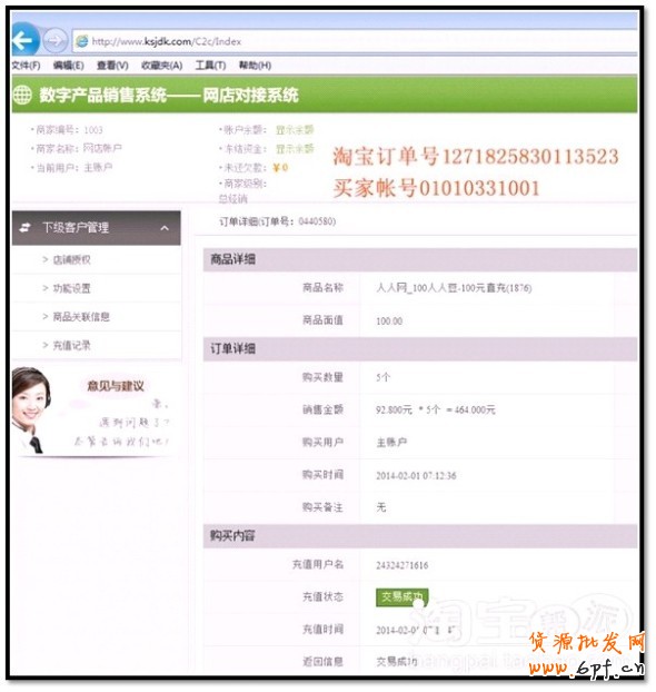 - 淘寶充值平臺商品。提供申訴訂單的淘寶充值平臺官方充值記錄截圖如下樣本: