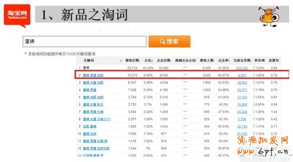 如果你買了數(shù)據(jù)魔方最簡單的就是看淘詞,比如我在數(shù)據(jù)魔方的淘詞里輸入了童褲,會出現(xiàn)這么多的熱搜詞,并且還有很多的指標(biāo)值,到底選擇哪個詞呢?大家看到的這個是按照搜索量排名,“童褲男童加絨”搜索量排第二名,但是在線商品在所有的熱搜詞中卻是比較少的,搜索量大說明買家需求大,在線商品少說明寶貝的曝光率高,這個詞條的點擊率和轉(zhuǎn)化率也都比較高,這樣的詞就是我們要找的。