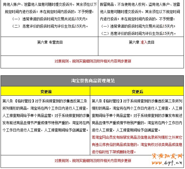 3、將線纜發(fā)信息中的“支付寶免簽約即時(shí)到賬接口”及“其它有違公序良俗的商品或者信息”遷移到“淘寶禁售商品管理規(guī)范”,并且調(diào)整“發(fā)布違禁信息”的定義。