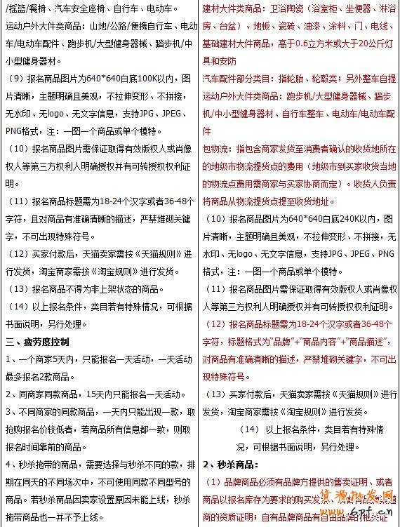 1、《淘搶購招商規則》新增了限購規則,同時對普通商品和秒殺商品的報名要求進行了調整;