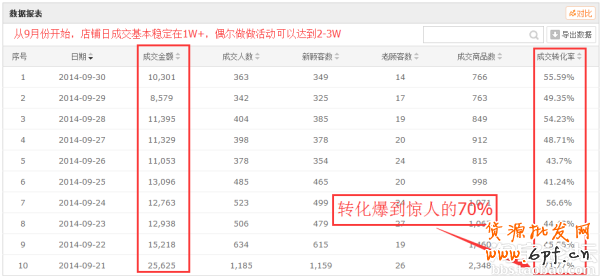 這是近期的數據。單品總轉化率高達30%-40%,搜索轉化也有10%以上。拍付率峰值能達到96%。