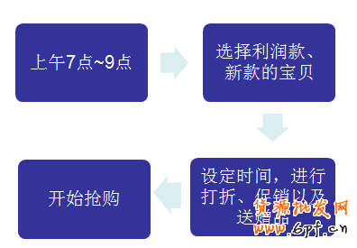 其實在上午7點到9點的時間段,這個時間段店鋪可以選擇一些利潤款,或者是新款,進行打折促銷,同時設定好時間段,比如在7點到9點之間進行搶購,能夠獲得打折的優惠或者其他的贈送。這個時間是買家非??臻e的時候,這時候的打折寶貝對他們來說吸引力對大,這個原理與早上8點一大群大媽大叔守候在超市門口等待半價雞蛋的原理如出一轍。