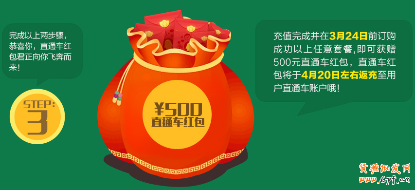 一定要完成第一步充值和第二步產品訂購哦,這樣直通車紅包君可以準備上路出發啦!