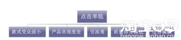 假如一款寶貝,款式是符合爆款潛質的,基礎點擊率也是較好的,但在直通車操作時,由于出價太低,排位很后面,同時創意比較差,關鍵詞又太寬泛不精準,價格也偏高,最終造成點擊率很低。這就會干擾你分析,哪個因素是影響點擊率的核心問題,可能會誤判為款式問題,最終放棄推廣。