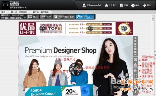 4.模板由模塊組成,模塊可以自由組合,添加、刪除、復制移動。