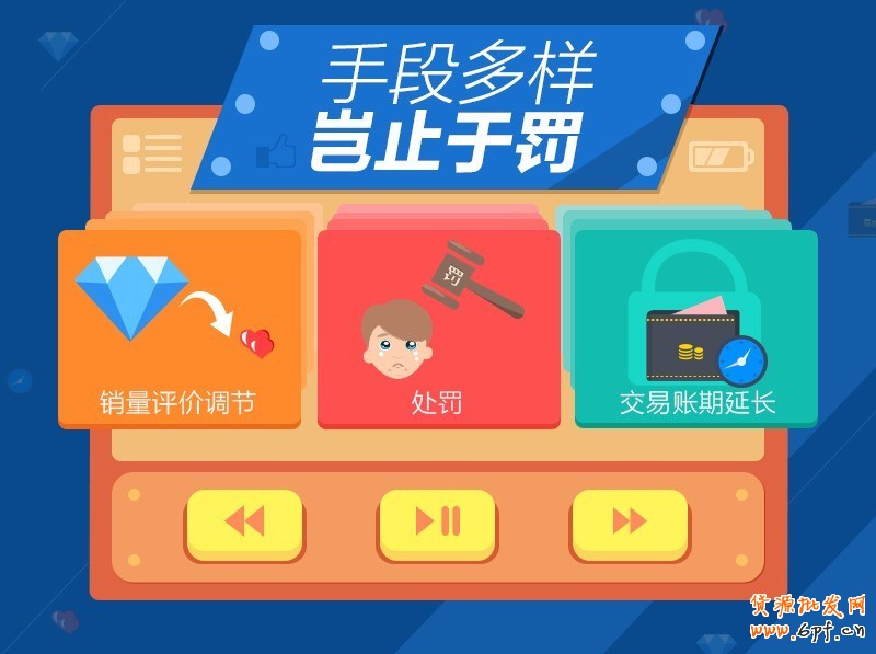 可能有很多賣(mài)家都存在這樣的誤解,覺(jué)得淘寶規(guī)則就是用來(lái)處罰的,其實(shí)也不全是,處罰僅僅只是其中的一個(gè)小手段,除此之外,還會(huì)對(duì)銷(xiāo)量評(píng)價(jià)進(jìn)行調(diào)節(jié),會(huì)對(duì)交易賬期進(jìn)行延長(zhǎng),在2015年,還將會(huì)由更多的調(diào)控手段慢慢出臺(tái)的哦。