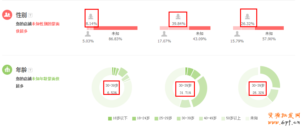 通過店鋪訪客也可以分析出,店鋪成交的一個人群多是未知性別,并且年齡多數是在30~39歲之間,通過這個數據發現,直通車定向數據也是可以為寶貝細化定向推廣測試的。
