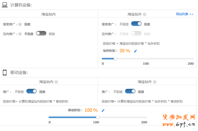 投放平臺(tái):站內(nèi)站外的定向都不投,其他投。手機(jī)端開通,站外折扣設(shè)置30%-50%