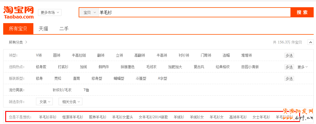 1、通過淘寶的下拉詞、長尾詞和相關(guān)詞。