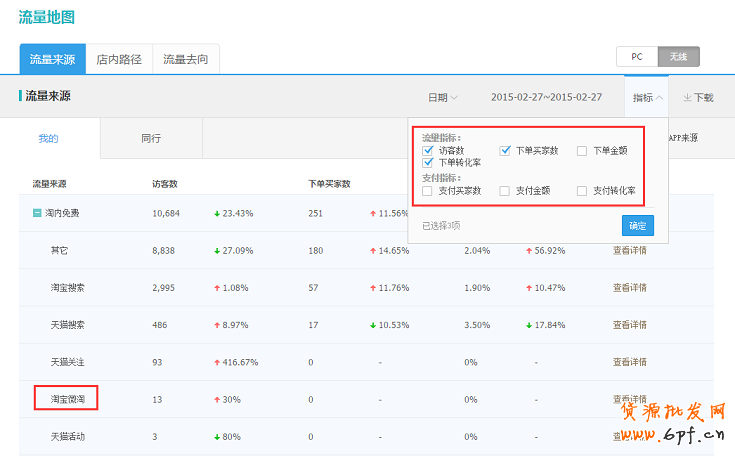 如下圖紅框處:通過生意參謀可以看到通過微淘帶來的訪客數,下單買家數,下單轉化率。