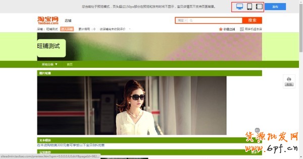 來看看pc端的效果,店鋪首頁(yè)已經(jīng)變成了剛才裝修的多端頁(yè)面。同理,用pad訪問店鋪首頁(yè)時(shí),會(huì)發(fā)現(xiàn)首頁(yè)也替換了。