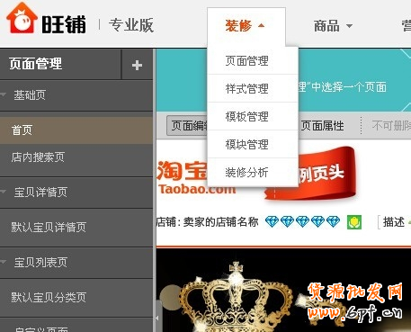 4、在裝修界面上,有“頁面管理”,“樣式管理”,“模塊管理”等選項卡。