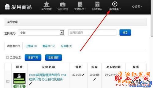 點(diǎn)擊自動調(diào)整按鈕,打開自動上下架的對話框(以前這里就叫做自動上下架,下載改名為自動調(diào)整。)