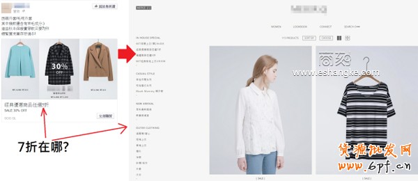消費者進入到你的頁面前的思考脈絡非常重要,例如下面的廣告范例,消費者看到服飾7折的廣告,但點擊后進入的頁面(Landing Page)居然看不到任何明顯有關7折的文字。