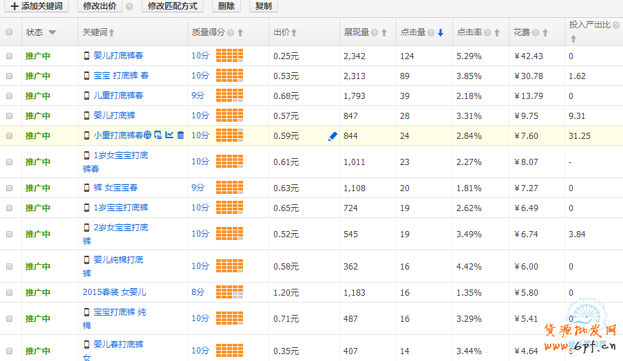 主推寶貝前期通過測試關(guān)鍵詞以及圖片,提升寶貝點擊率培養(yǎng)關(guān)鍵詞質(zhì)量得分,后期結(jié)合流量及轉(zhuǎn)化逐步把ppc控制下來。通過測試及培養(yǎng)后主推寶貝點擊率在4%左右,轉(zhuǎn)化詞的質(zhì)量得分基本都在9分以上。