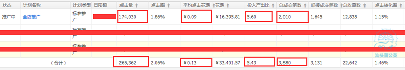 那么經(jīng)過全店引流的方式培養(yǎng)之后,全店的數(shù)據(jù)也是有一定的成果。全店的ppc僅為0.09元,而投入產(chǎn)出比高達(dá)5.6,高于整個賬戶的數(shù)據(jù),且流量占總流量接近2/3,同時成交筆數(shù)占總成交筆數(shù)接近1/2。因此,全店的推廣模式,讓這個賬戶的數(shù)據(jù)有了質(zhì)的提升。