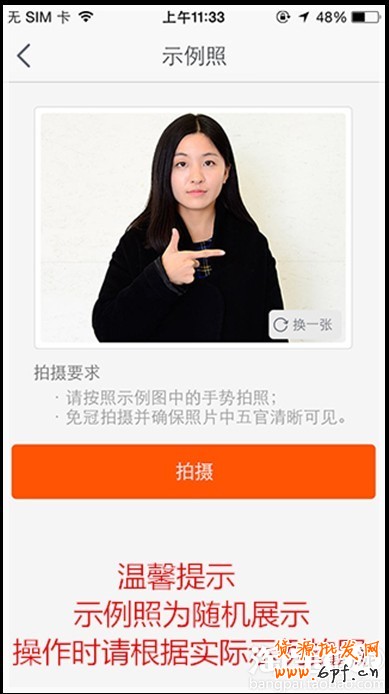 3、拍照(無線認證只需要上傳手勢照片 身份證正面照片):