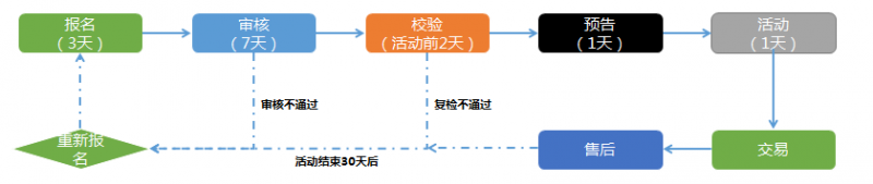 活動流程:PS: 主題活動展示時間以報名入口為準,一般3天 ,清倉活動展示時間:4天