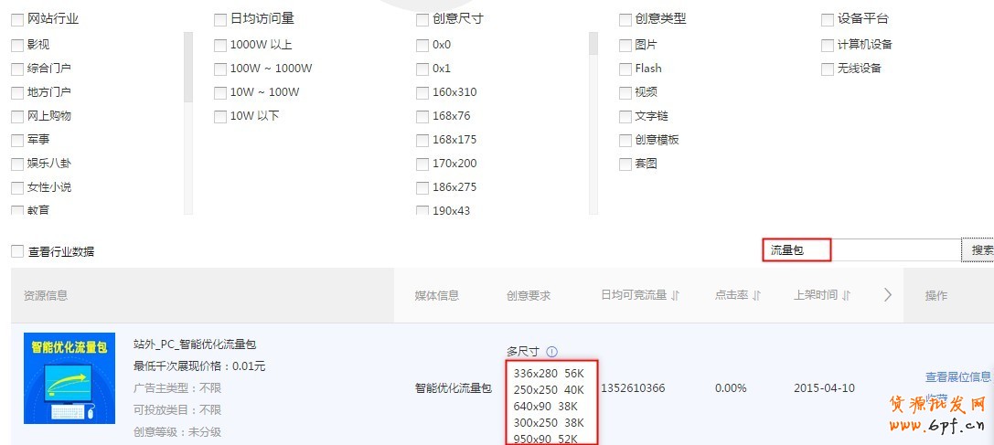 投放時,只要將“智能優化流量包”當成是單獨的一個資源位就可以;創意尺寸目前是5(336x280,250250,64090,300250,95090);支持定向和資源位底價0.01元;