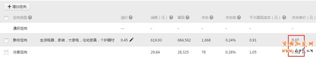 另外,部分類目的群體定向點擊效果會接近于興趣點定向。