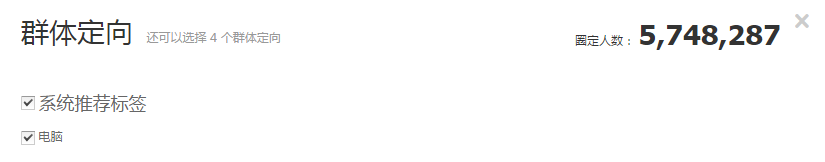 群體定向通過系統推薦設置圈定的人群有574萬,而興趣點定向圈定的人群只有175萬