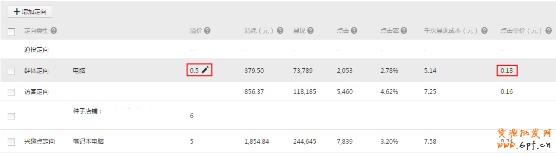 投放效果:群體定向的點擊率2.78%,接近于興趣點定向3.20%,由于設置的溢價價格只是比資源位底價加了0.5元,最后的CPC只有0.18元,效果非常不錯。