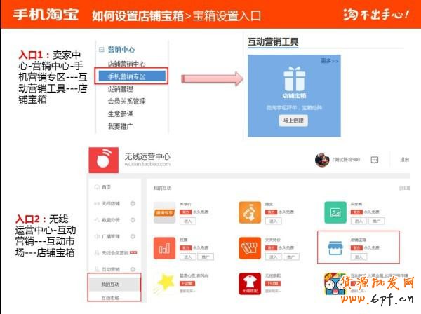 店鋪寶箱有2個入口,第一個在賣家中心的營銷中心,有個手機營銷專區,點擊進去,看到一個互動營銷工具分類,就可以看到店鋪寶箱。