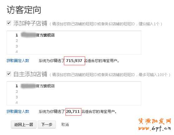 訪客定向:這塊分成種子店鋪和自主店鋪。首先來看這兩者的區別,同一家店在種子店鋪和自主店鋪里圈定的人數是相差很大的,看下圖