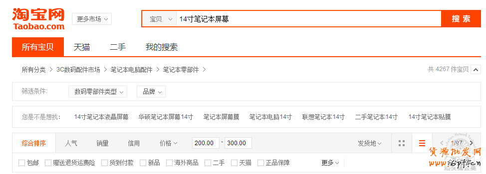 在整個14寸筆記本屏幕的搜索中,共有4649款寶貝,整個類目的競爭方面較之大類目小了很多。