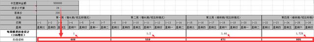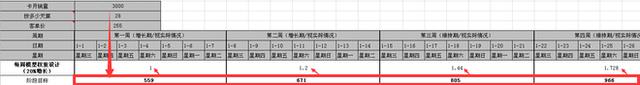 做完每周的比例調(diào)整,就要細(xì)分到每天上面。這個(gè)表格只是簡(jiǎn)單的設(shè)計(jì)了計(jì)算公式,只要確定好目標(biāo),自動(dòng)計(jì)算結(jié)果,然后根據(jù)這個(gè)目標(biāo)去把控?cái)?shù)據(jù)。