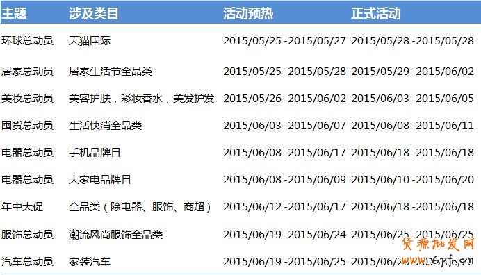 先來了解下天貓年中大促活動節奏,不同以往,今年時間跨度長達一個月,采用垂直品類預熱的形式先造勢,服飾和電器分時間爆發。