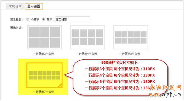 5.在寶貝推薦模板設置中的950通欄里面,寶貝的尺寸可以參考一下下圖。